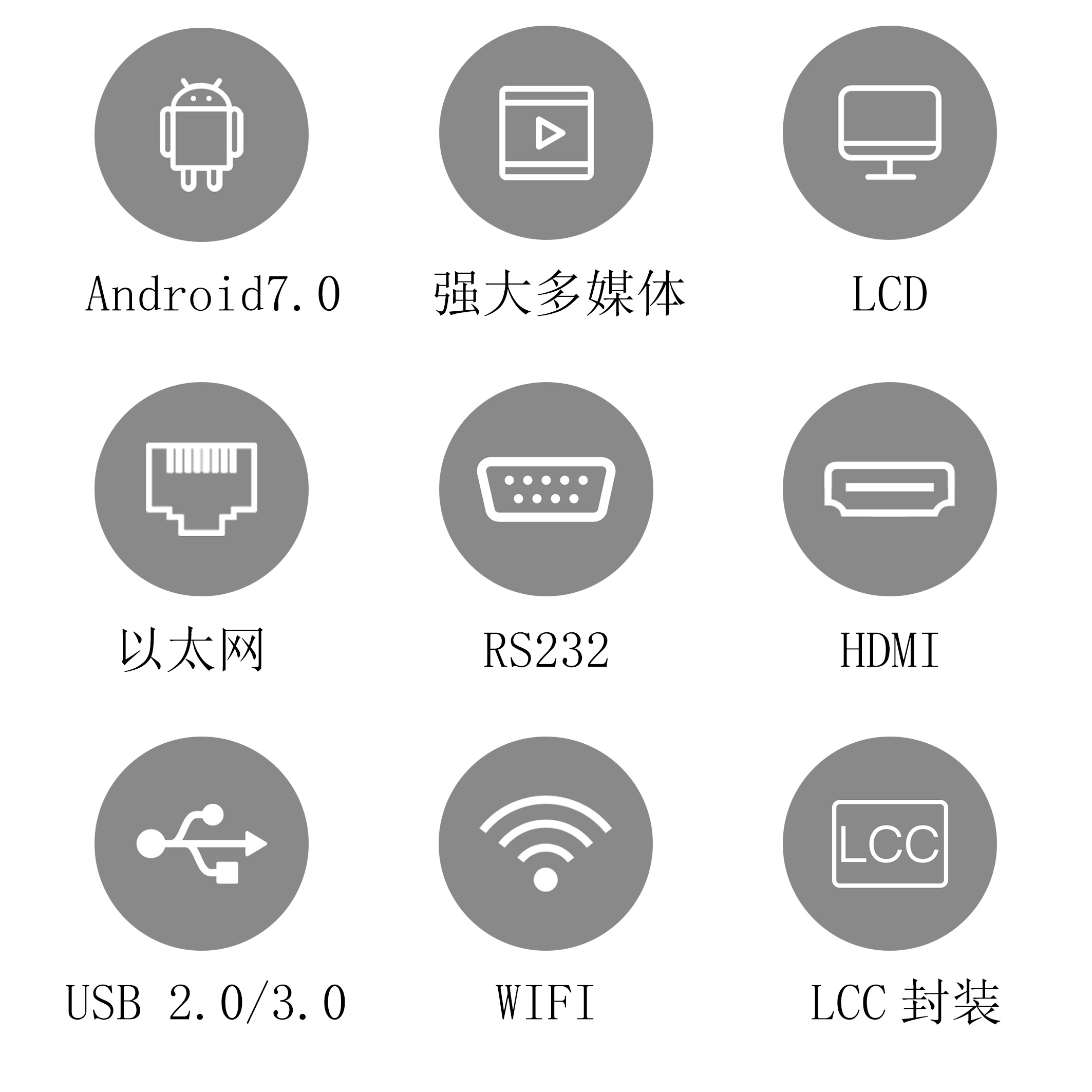 集成安卓系統,WiFi 和(hé)藍(lán™≈α)牙功能(néng)以及 GPS 于一(yī)體(t÷®ǐ),支持 1080P 高(gāo)清視(shì)頻(pín)和(hé)圖♠Ω©片播放(fàng),內(nèi)置 HDMI 支持4K;強大(dà)的(✔↑λde)支持串口 、支持 USB、支持 I2Cβ☆←、支持 GPIO;采用(yòng) LCC♦∑' 封裝,方便貼片和(hé)調試